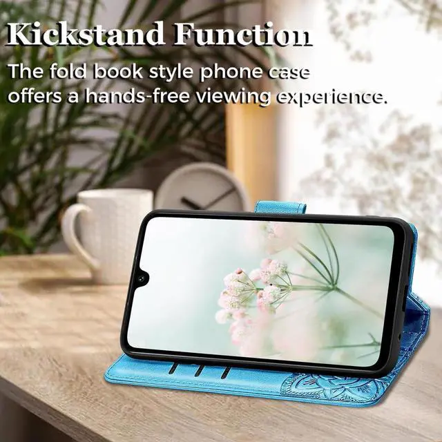 Stand Function: The luxury leather case for A17 5G has a stand function A folding line on the back of case allows you to convert the wallet case into a kickstand. The fold book style phone case offers a hands-free viewing experience.