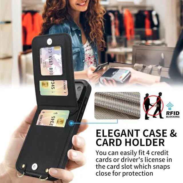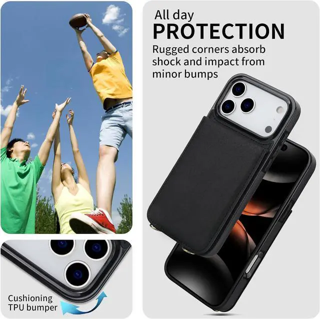 COMPATIBLESlim design crossbody phone case ONLY compatible with iPhone 17 Pro 6.3 inch. Not compatible for iPhone Air 17 17 Pro Max or any other smartphones[Wallet & Case] This open face flip case wallet design with 4 card slots with RFID Blocking protection for your credit cards drivers license and ID without being too bulky. Are you getting tired of fishing around in your purse for your phone? You will leave your purse at home since getting this HOGGU case[Removable & Adjustable Crossbody Strap] This HOGGU corssbody case come with a detachable shoulder strap make it convenient to carry your phone with you while you don't have pockets.