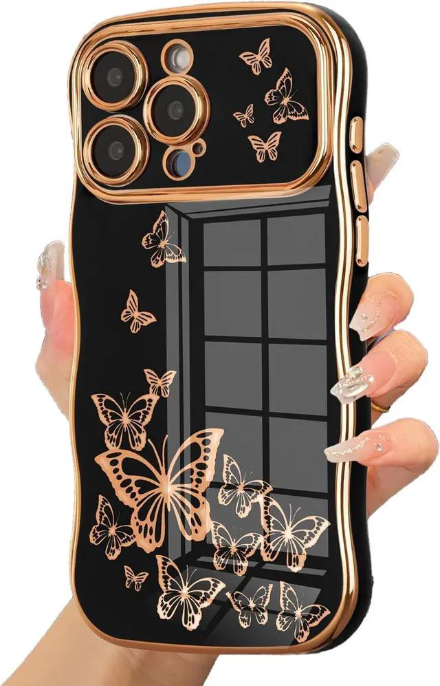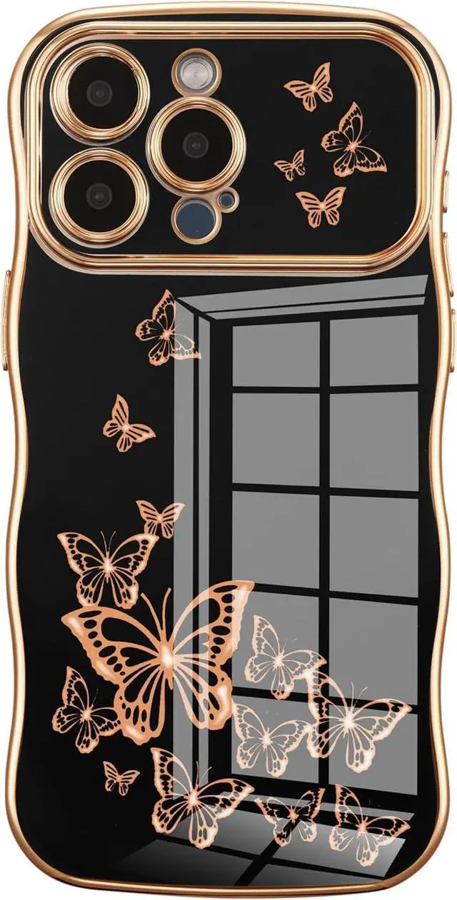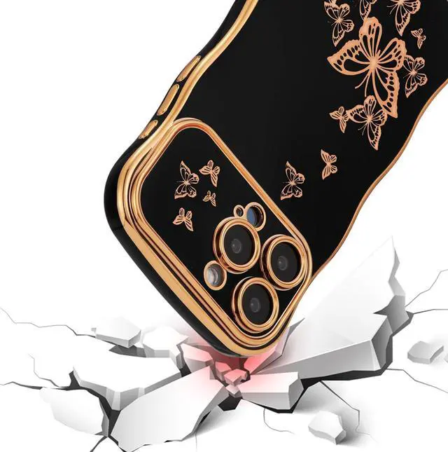 Aesthetic Butterfly Pattern:: The back of this phone case is printed with a beautiful electroplated gold butterfly pattern, which makes your phone more unique & stylish