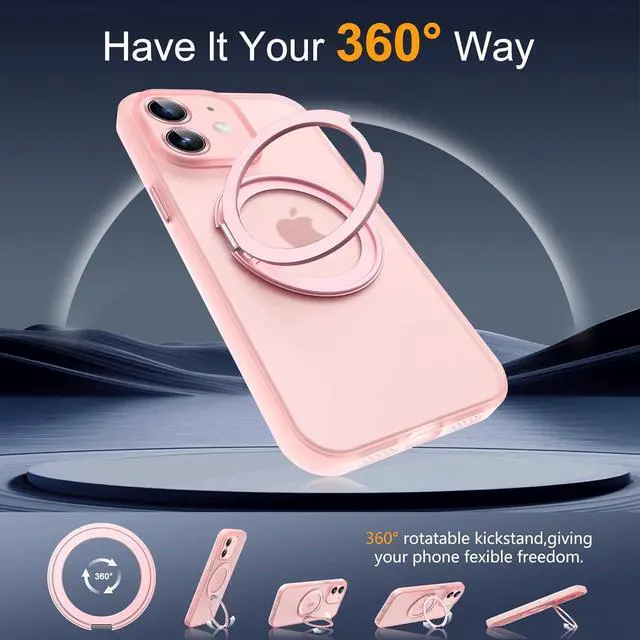 Compatible with iPhone 11 Case 6.1"[Full Camera Lens Protection][Compatible with Mag-Safe][360°Rotatable Magnetic Ring Stand] Translucent Protective Case for iPhone 11,Pink
