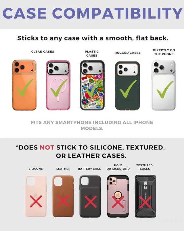 How to: Just Peel off the 3M Sticker, and Stick it on the back of your phone case! It' s so strong it won' t peel off. Any size iPhone, Samsung Galaxy or Android Smartphone Such as iPhone 17, iPhone Air, iPhone 17 Pro/Max, iPhone 16, iPhone 16 Plus, iPhone 16 Pro/Max, iPhone 15, 15 Pro Max iPhone 14, 14 Pro Max, iPhone 13, 13 Pro/Max, 13 Mini, iPhone 12 - Pro - Pro Max - XS Max - XS - XR - X - 8 - 8 Plus - 7 - 7Plus - 6 - 6+ - 5 - Windows Phone, One+, Oppo, Xiaomi, Note 9, Galaxy S9, S10 Etc.
