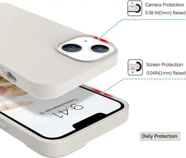 Screen and Camera ProtectionRaised camera and screen edges help your iPhone 13 protects against scratches. The high-quality liquid silicone material is better more able to absorb the shock than hard PC. This cover can provide your iPhone 13 enough protection.