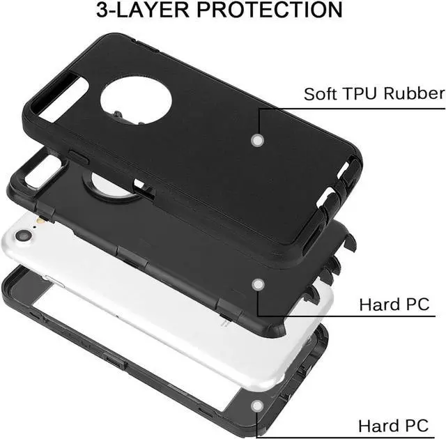 This 3-in-1 iPhone protective case made with hard plastic PC inner bumper and soft rubber silicone outer cover construction absorbs shock bumps and drop.
