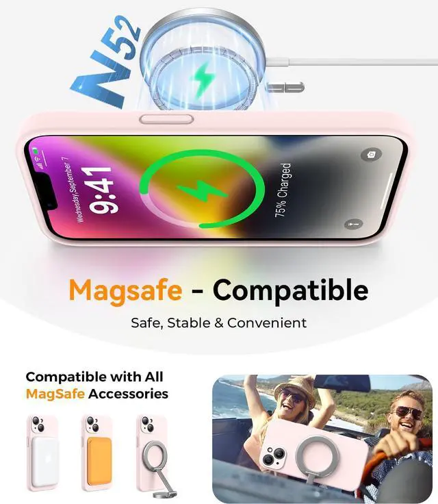 [More Security]Food Grade Silicone Case Compatible with iPhone 14 ( 6.1 -inch): This minimalist case is designed for enhanced safety and durability. The material is non-toxic and hypoallergenic, making it safe for skin contact and reducing the risk of allergies. It features a soft microfiber lining to keep your phone scratch-free and supports magnetic/wireless charging for added convenience.