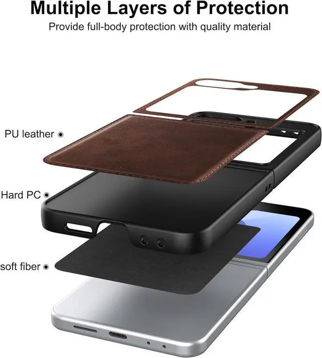 DURABL PROTECTION: Galaxy Z Flip 6 5G Leather Case is Made of Hard PC PU Leather Back. Classic PU synthetic leather back case stylishly provides an elegant and fashion look and feel. Good quality and great looking case.