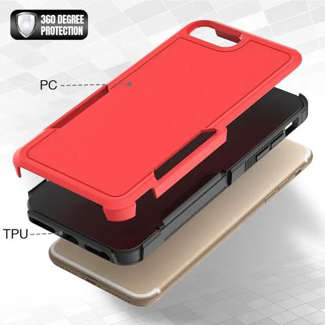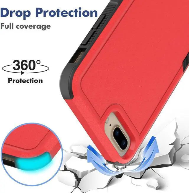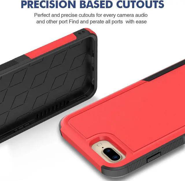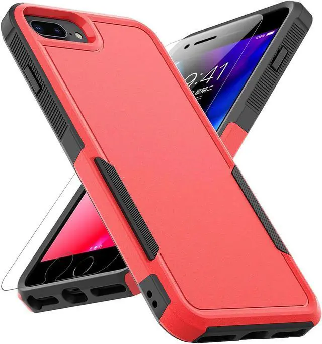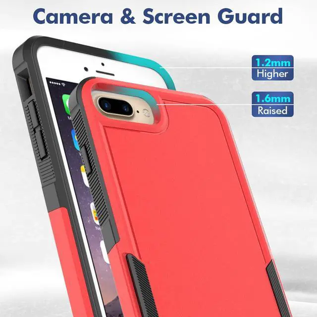 for iPhone 8 Plus/iPhone 7 Plus/iPhone 6 Plus Case: Dual Layer Protective Heavy Duty Cell Phone Case Shockproof Rugged Bumper Tough with Screen Protector - 16FT Military Grade Drop Tested, Red