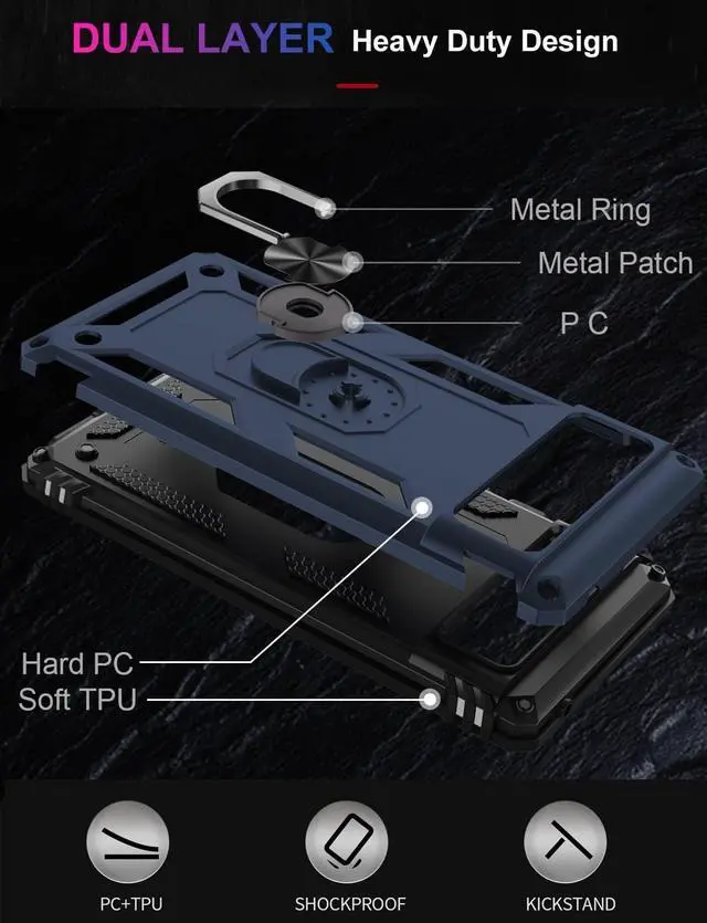 ROTATING KICKSTAND - This built-in metal ring stand can rotate 360°, easy to rotate and sturdy on the case, gives you the convenience to watch videos and movies hands-free with desired comfort and stability. It also can be attached to the magnetic car holder. It is convenient for you to navigate the route when driving.