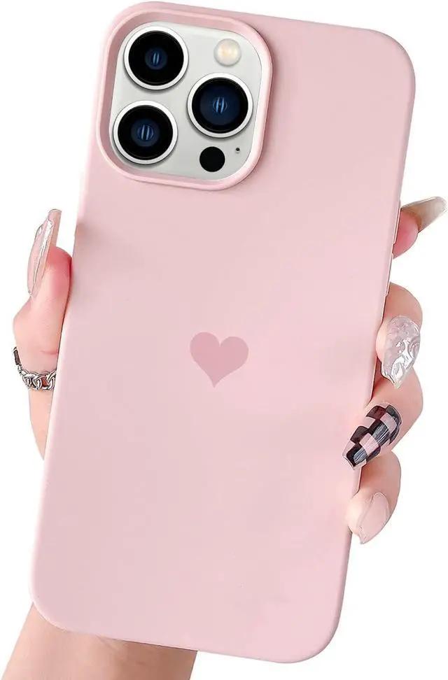 PRETTY LOVELY HEART DESIGN: Beautiful Pink Cute Phone Case for iPhone 13 Pro Max for Women Girls. Pretty attractive, It is easy to wipe off dust and dirt on this liquid silicone phone case