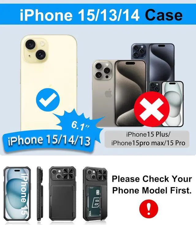 ? Precise Compatibility for iPhone 15/14/13 caseThis wallet case is ONLY compatible with iPhone 15/14/13 5g ( 6.1 ). Please confirm your phone model first before ordering.?