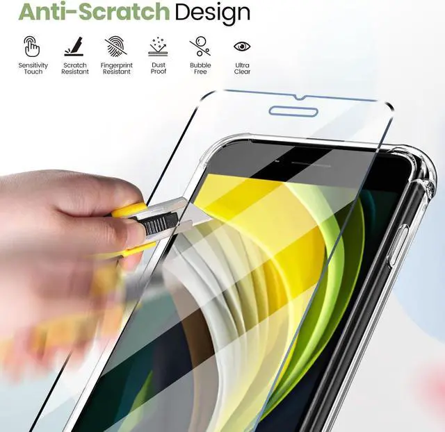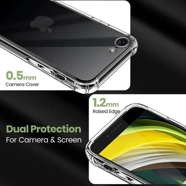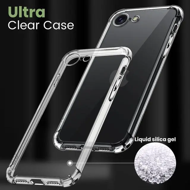 Value Pack: Clear Slim & Functional** Complete bundle: **Transparent anti-yellowing TPU case** ( 1.2 mm thin) + **2x glass screen protectors** + **leather kickstand**. Shows off your iPhone 8G/7G/SEs design while enhancing grip and heat dissipation.