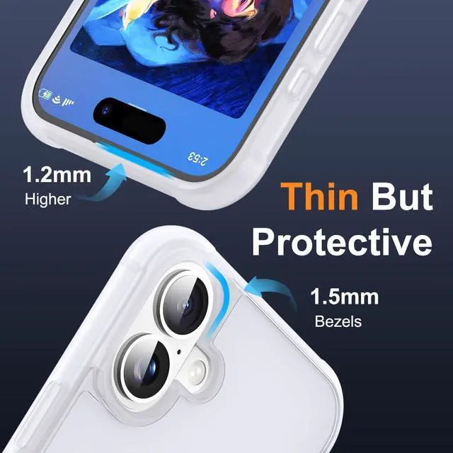 Translucent Design - Combining a premium translucent PC back with soft TPU sides this case provides great grip feeling and effective slip-resistance and is easy to clean thanks to its anti-fingerprint technology. Only compatible with iPhone 16 Plus 6.7.