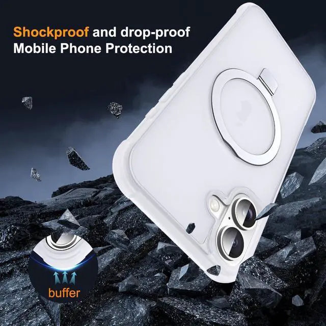 Magnetic O-Ring Kickstand - Made of Aerospace-grade aluminum the O-stand is practical and multifunctional for daily use. It can be adjusted between 40°-120° for a stable hands-free viewing experience and doubles as a ring holder for convenience. Strong Magnetism - Featuring 24pcs N52 magnets this phone case is compatible with Mag-Safe and can easily attach to all Mag-Safe accessories and third-party Qi-certified wireless chargers for hassle-free charging and use. Its magnetism is strong enough to support the use of a car mount in the city. Military-Grade Drop Protection - With updated 4 obvious large airbags at four corners and raised bezel design for screen & camera lens protection this case provides superior protection against drops and impacts.