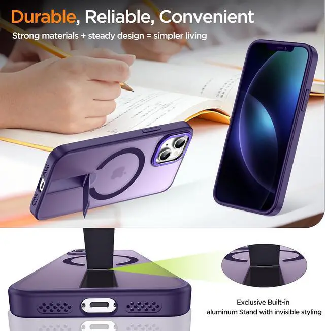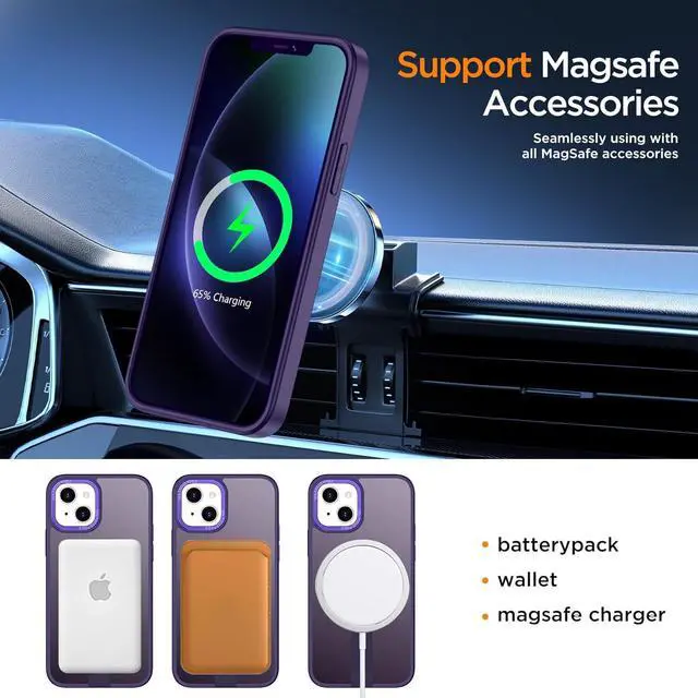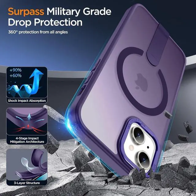 Back Design?: This magnetic iPhone 13 case combining a? matte translucent back? with a flexible TPU frame and rigid PC base offers premium tactile comfort and a secure grip. Its? nano-coating? blocks smudges fingerprints and scratches after rigorous testing. Metallic accents on the stand and camera add elegant flair merging sleek aesthetics with robust daily protectionConsistent Charging &