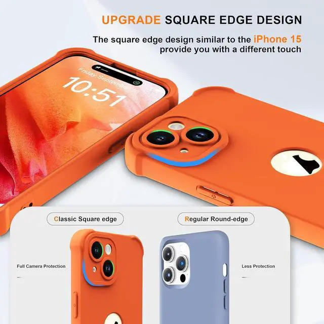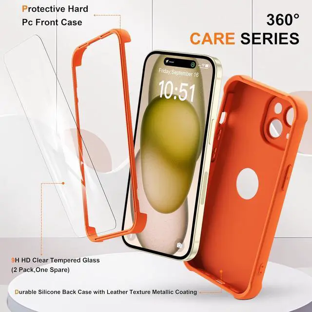 • ORETECH for iPhone 15 Case with [2 x Screen Protectors] [15 Ft Military Grade Drop Test] [Full Camera Protection] 360° Full Body Shockproof Slim Thin Phone Case iPhone 15 Cover 6.1 Orange