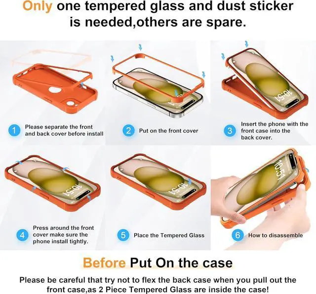 [Exquisite Craftsmanship] Specifically designed for iPhone 15( 6.1 inch) not for iPhone 15 Pro( 6.1 inch)or iPhone 15 Pro Max( 6.7 inch). ORETech 360° shockproof rugged armor case cover every inch of your iPhone 15 body and screen with only 0.9 mm thickness and 10 grams to keep the original touch and function. Supports wireless charging. [Fully Protection Technology] Aseismic airbag inside four corners to add drop defense the Shock-Absorption and rised high design protect your iPhone 15 body & screen and Full camera lens Protection prevent any scratch to your camera. Including 2 PCS Tempered Glass Screen Protectors (One as spare) to provide further insurance for iphone 15 screen.