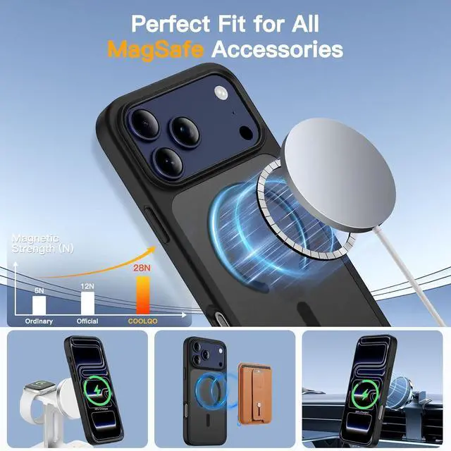 Super Magnetic Ring: COOLQO case has built-in magnet array which includes 36 strong magnets provides a safe and efficient wireless charging experience. It can be attached to any magnetic accessories securely and firmly. No interference/loss to the charging of your phone.