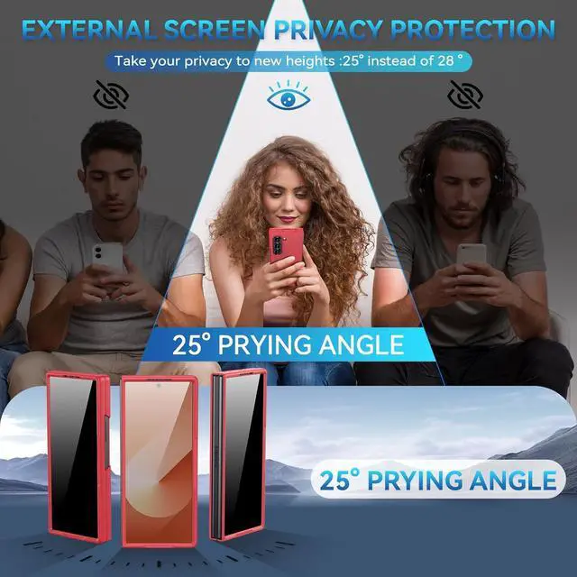 MUST READ: Please remove any other third-party screen protectors and the product's own overlay film before use.?? Protecting Your Privacy In PublicZ Fold 6 case has a built-in privacy protector (front screen only). The upgraded glass utilizes advanced plasma exchange technology which is stronger and more wear-resistant than traditional glass easily accessing every corner of the screen. In addition the privacy film supports front visibility only so when you pass the reading information on the external screen in the subway/bus or shopping mall no one next to you can see it.