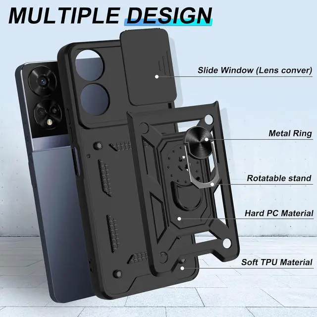 Notice: Due to the metal ring on the back this case will NOT work with wireless charging function[Military Grade Protection] Double layer shockproof case made by TPU+PC. This multi-layer cushion structure provide additional shock absorption protection. TCL 50 XE 5G Phone Case shockproof corners can keep your phone from scratching and breaking when dropped[360° Rotating Kickstand Ring] Equipped with premium metal ring kickstand designed for TCL 50 XE 5G Case offers multiple adjustable angles. Built in kickstand holds your phone at optimal viewing angles for movies & videos and free your hands[Sliding Camera Cover] Unique camera slide cover design for TCL 50 XE 5G Phone Case smooth slide. Just slide left and right to protect/use the camera lens. now you can capture stunning photos and videos without worrying about damage to your precious lens[ATUMP QUALITY SERVICE]