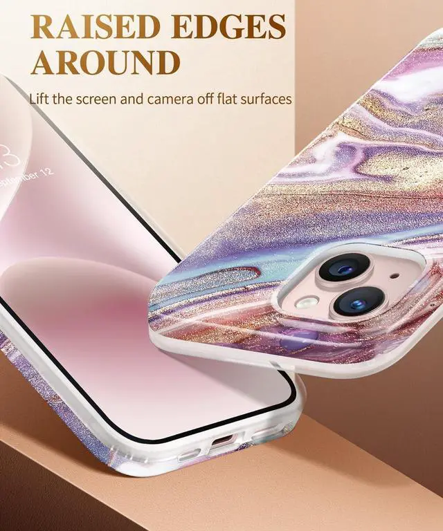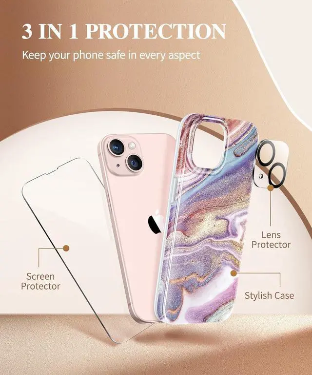 [Compatibility] This case is ONLY compatible with iPhone 13 ( 6.1 inch 2021 release). Please check the phone model before purchasing (Refer to image 2). The case withstands drops up to 10 feet (3m) which has been certified to meet military-grade drop protection standards. GVIEWIN [3 in 1] phone case includes 1 screen protector and 1 camera lens protector for providing 360° all-around protection. [Stylish Marble Aesthetics] This case showcases a stylish marble pattern making your phone stand out with sophistication. Utilizing advanced stamping technology rest assured that the pattern will remain vibrant and fade-resistant over time.