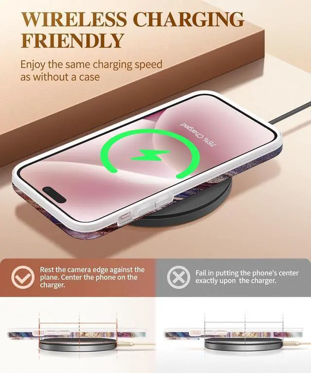 [Wireless Charging & Trustworthy Service] Support wireless charging with no need to take off the phone case. Perfectly match with the marble ring holder of GVIEWIN Store. If any product issues such as incompatible phone model product not as expected please freely contact us via Message Center.