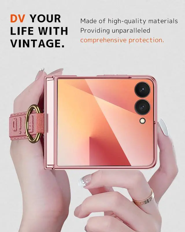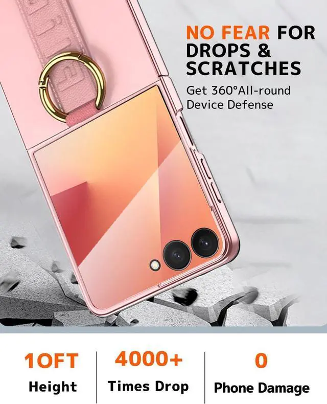 (Note: Case ONLY Compatible with Z Flip 7 Phone)Elegant with Strong Protection-Super unique and novelty designed with hard PC coverage for MAX full protection and free Fliping bonded tightly from edge to edge. 1.5 mm raised lip protects your camera and screen of the phone relieving impact and protects your Z Flip 7. Built-in high sensitive & clear 9H tempered glass camera screen protector for Galaxy Z Flip 7 phone case ensuring comprehensive protection for front screen against scratches fingerprints bumps and accidental drops. Secured Finger Strap-Keep your Galaxy Z Flip 7 safe and protected with this reinforced Galaxy Z Flip 7 wrist strap casedesigned for ultimate protection & convenience offering a secure hold ideal for active lifestyles. Whether commuting traveling or working out the Galaxy Z Flip 7 phone handle band case ensures a firm grip preventing accidental drops.