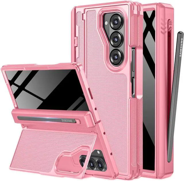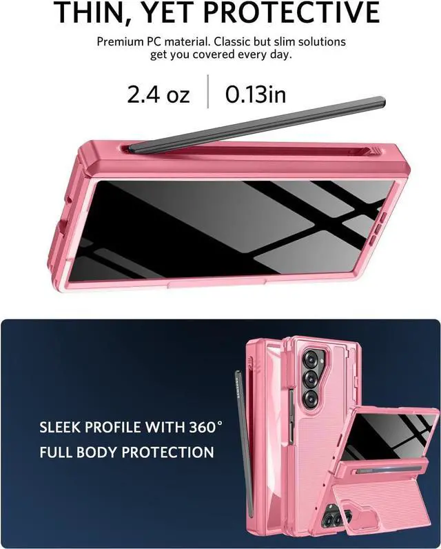(Note: The pen holder ONLY fits the z fold 5/6/7 S Pen Fold Edition). Hinge Protector & Privacy Screen Protector- Design with premium hard polycarbonate the galaxy fold 7 case with hinge spring features a semi-automatic hinge while still provide 360° heavy duty protect. Hinged cases for galaxy z fold 7 case with anti peep privacy tempered glass screen protector film provides front screen without scratches and explosions. Privacy screen protector for galaxy fold 7 case only visible to the person in front of screen to keeps your personal information. Built-in Hidden Kickstand- Stand for fold 7 case at the back made with lightweight yet robust material stable stand is ready to hidden behind and placed horizontally the z fold7 kickstand case not add extra bulk Precise laser cutting allows access to all buttons easily. Raised edges for CAMERA & SCREEN against bumps and accidental drops fingerprints scratches.