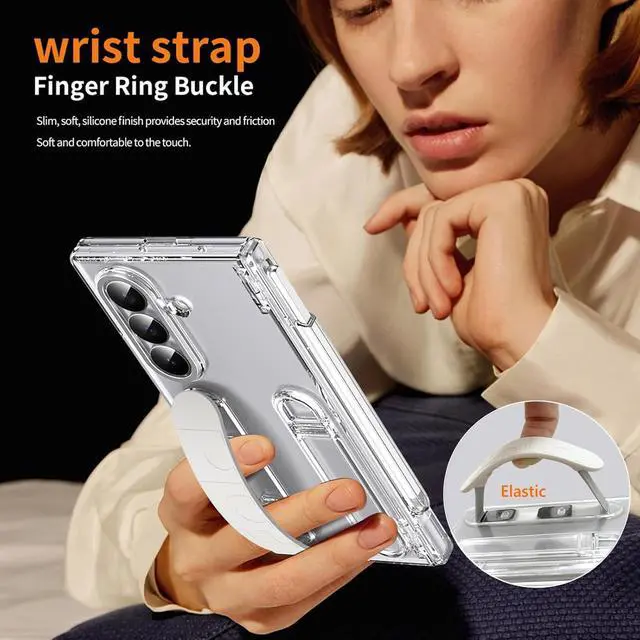 Privacy: 1. The z fold 7 clear case with finger strap is built in PRIVACY SREEN PROTECTOR that safeguards your sensitive information in public settings. It effectively prevents onlookers from seeing your screen while you're using your phone on subways buses in malls or at the office. The Screen is directly visible and still visible within 30°; 9H Hardness Tempered Glass HD Clear and High Touch Sensitive keep the original touch experienceAll-round Protection -
