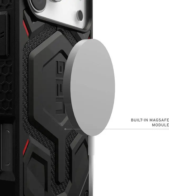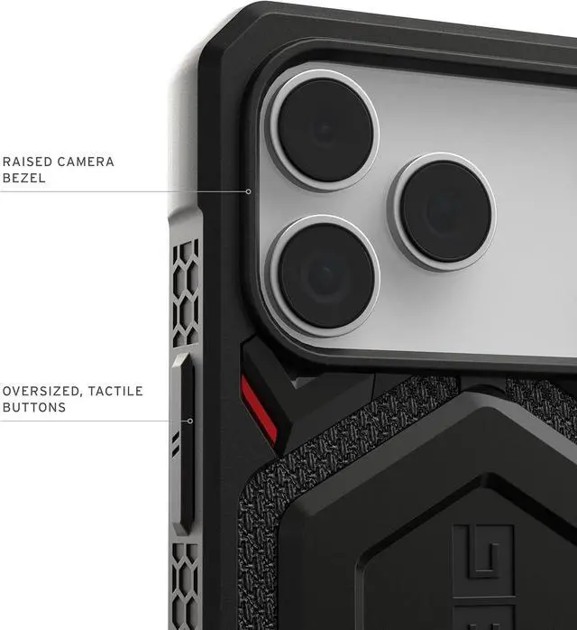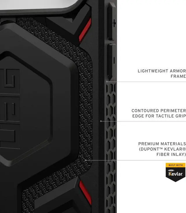 Multi-layer Protection: Handcrafted with premium materials featuring a feather-light construction with 5 layers of protection staring UAG's signature armor frame shock-resistant core layered with DuPont Kevlar Material a polycarbonate shear plate alloy metal hardware and impact-resistant rubber surround.