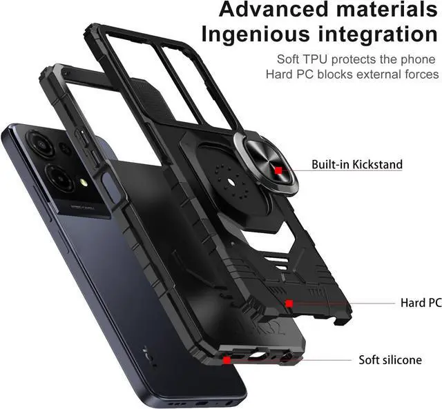Compatible WithThis case is specially designed for TCL K32/K33 5G 2025. Built-in 9H Glass Screen ProtectorMerchandise Comes with tempered glass screen protectors. Protect your phone screen from scratches and bumps. Effectively reduces fingerprints and smudges maintains original responsiveness ultra-clear. Dual Layer ProtectionComposed of a front hard pc bumper and soft rubber silicone back cover We provide extra protection for both by raising the edges around the screen and camera to avoid everyday scratches and provide greater shock resistan. Built in Metal KickstandIt provides multiple adjustable angles to watch videos freeing your hands. You can also pass your finger through the ring to prevent it from falling off.