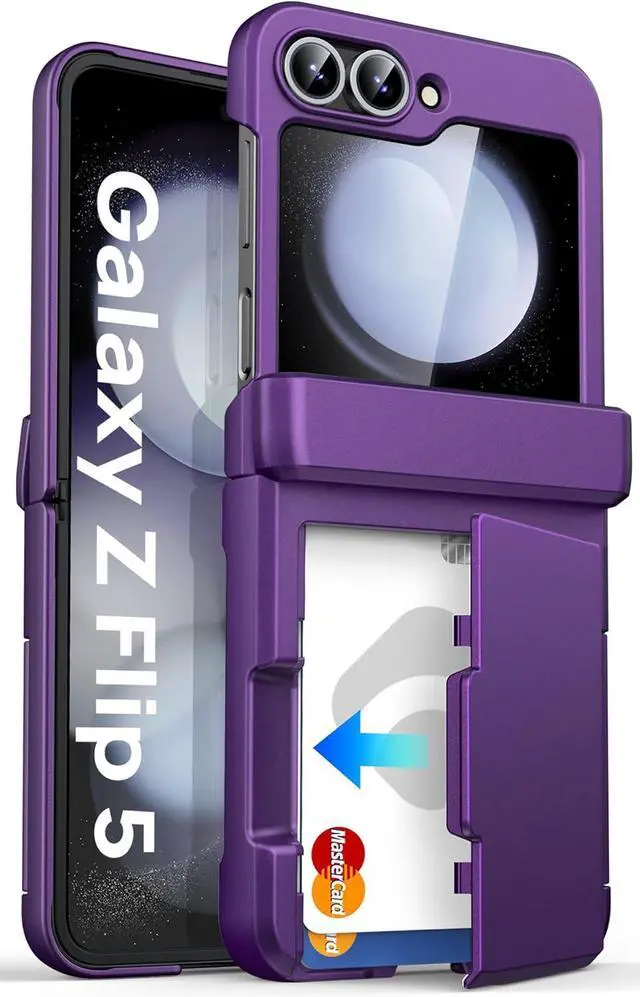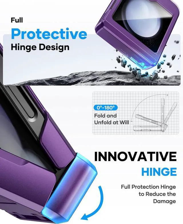 The recessed structure further prevents the cards from falling out when removing them providing you with safer protection when using the card holder functionRugged Hinge ProtectionThis Z Flip 5 Case is designed with a rugged semi-automatic hinge protection design. With the help of the sprung-back principle the hinge cover can be freely folded and unfolded according to different forms of the zflip 5 phone which protects against scratches or damages and provides strong full-body protection for your new caseOuter HD Screen Protector ASAFCASE Z Flip 5 case equipped with the new upgraded back screen protector HD transparent hydrophobic and comfortable.