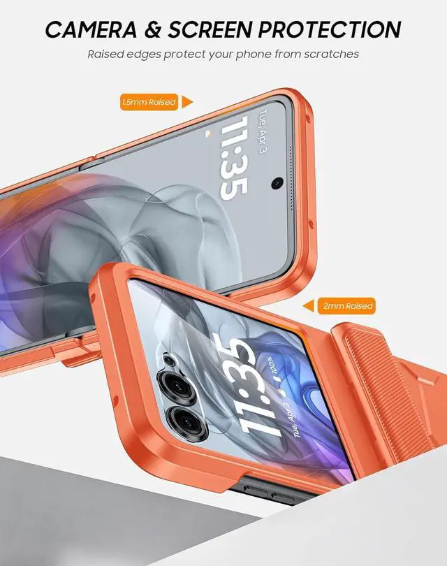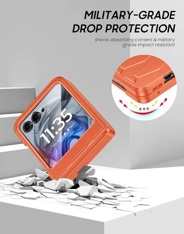 Hinge Protection: Vizvera Motorola Razr 2024/Razr 2025 cover adopts innovative one-piece anti-shock hinge protection design don't have to worry about up and down sliding and separation of the situation. raised edge protection for full coverage of the screen and camera when your phone is dropped built-in safety shock pads and enhanced textured edges and grip lines to give you a better grip on your phone and prevent those nasty drops. It helps keep your cell phone investment safeHD Clear