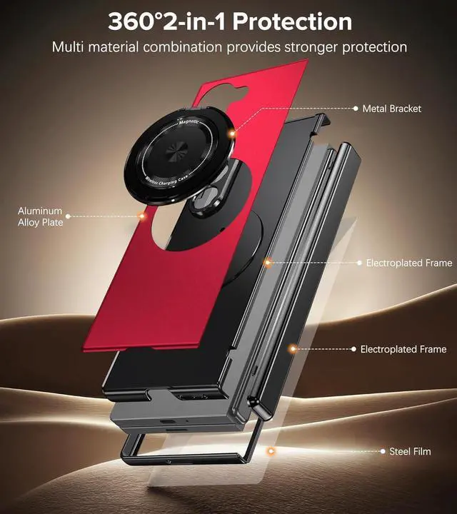 Rotate Kickstand Design: The Z Fold 6 case with metal kickstand can rotate 360° and support Mag-Safe wireless charging. Galaxy Z Fold 6 Case built in kickstand gives you the convenience to watch videos and movies hands-free with desired comfort and stabilityFull