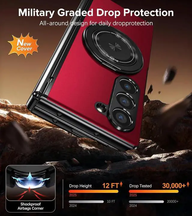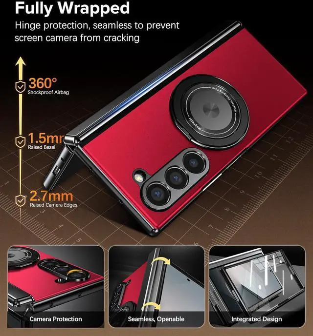 Compatibility: Rugged holder phone case for Galaxy Z Fold 6 5G. The all-in-one design of the z fold 6 protective case with screen protector ring holder Mag-Safe magnetic charging and offers comprehensive protection. Please confirm your phone model before purchasingFull