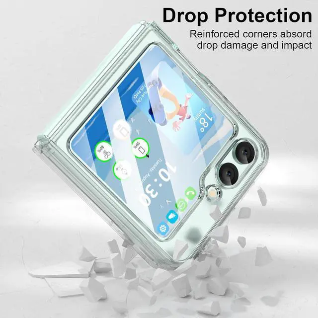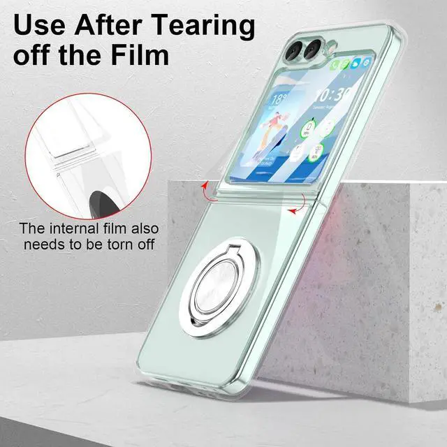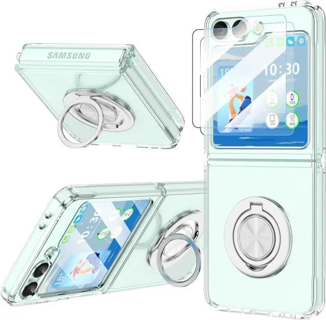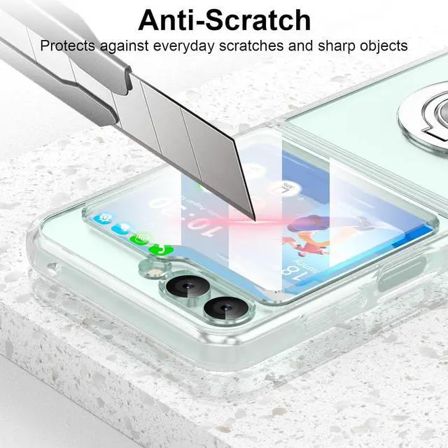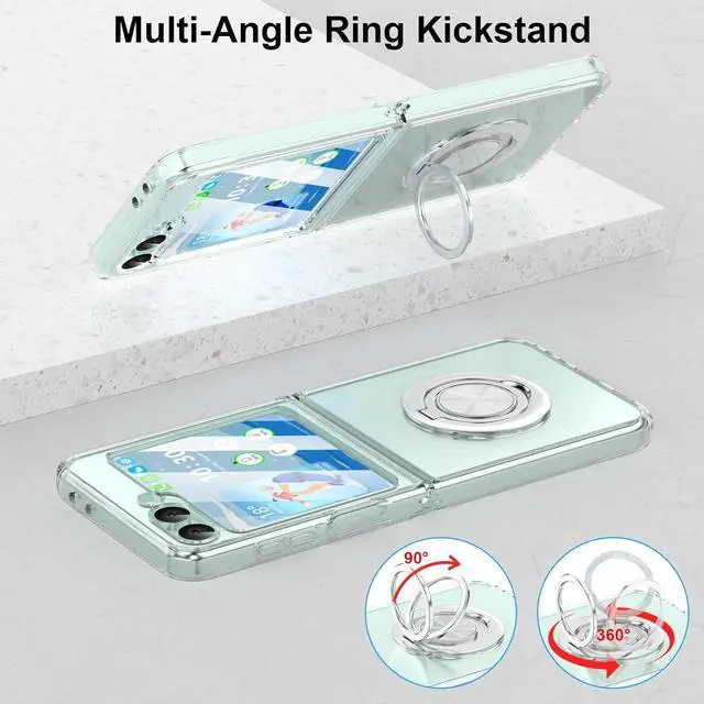 EXACT Fit This transparent lightweight Z Flip 6 case clear with ring stand and built-in tempered glass screen protector designed only for Galaxy Z Flip 6 case 2024 only - Compatible with most 3rd-party screen protectors and other z flip accessories. This flip 6 case work with magnetic car mount(Note: Does Not support wireless charging If you need this it is recommended to buy a normal phone case which without Ring Kickstand. )Kickstand FeatureThe ring kickstand for galaxy z flip 6 case is designed as 90 & 360 degree rotating that beats all the other ring holder cases. Ring holder offers extra grip that reduces the chances of dropping your phone and break it. The kickstand with adjustable angles allows you to always find a comfortable viewing position adjustable to prevent back neck and wrist pain. Compatible Magnetic Car MountBuilt-in fold-able kickstand can firmly holds your phone for horizontal viewing; Metal plate on the back can attach to magnetic car mount for navigation when driving. (Package not include magnetic car mount the metal plate of ring holder is nonmagnetic) Full ProtectionFor Z flip 6 case protective cover with unique four-corner drop-proof design & ring stand & built-in 2 tempered glass screen protector provide360° shock drop and scratch protection for your Flip Z 6. It made of hard PC and Soft TPU is sturdy and lightweight provide triple protedction for your Z Flip 6. High Quality Made of premium PC and TPU material with ring kickstand excellent feeling and skin-friendly perfect touch.