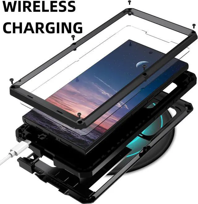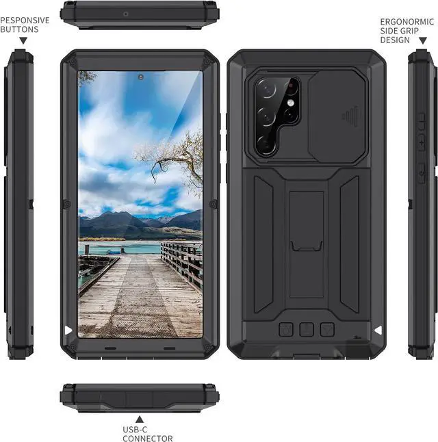 Extreme Outdoor Protection This Galaxy S22 Ultra rugged case is built for harsh conditions with a reinforced TPU bumper + metal frame to withstand drops dust and impacts. Full-Body Bumper + Raised EdgesThe 360° shock-absorbent design protects screen camera and edges. 1.2 mm raised lips prevent scratches when placed face-down. Built-in Kickstand for ConvenienceThe sturdy metal stand supports landscape & portrait mode perfect for streaming video calls. Anti-Slip & Wireless Charging FriendlyMatte textured back prevents drops while precise cutouts ensure full functionality. Works with Qi wireless charging. Whats Included1x Galaxy S22 Ultra heavy duty case 1x cleaning cloth 1x installation guide.