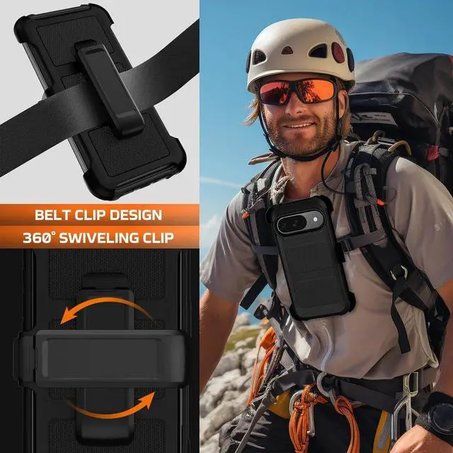 Pro: Engineered with multi-layer defense this Google Pixel 9 & Pixel 9 Pro case combines a solid inner shell and a soft outer cover. It meets MIL-STD-810G 516.6 standards (tested 4X for drops) providing shockproof defense against accidental damage. A raised bezel adds extra screen protection delivering true heavy-duty security for your Pixel 9 & Pixel 9 Pro. Rotatable & Removable Belt Clip for the Pixel 9 & Pixel 9