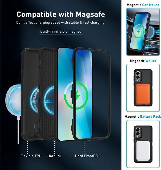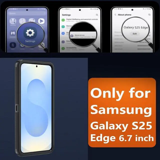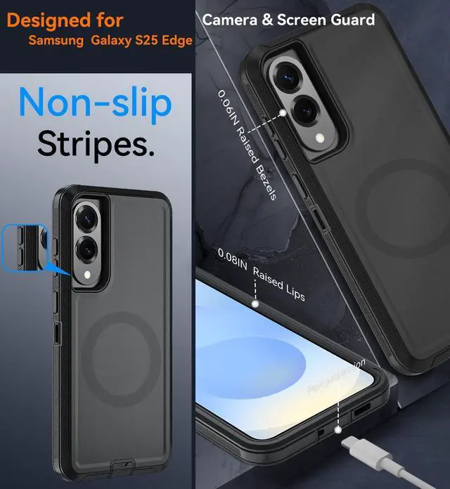 Compatibility Only Compatible with Galaxy S25 Edge 6.6 (2025) Not fit S25 6.2 or S25 Plus 6.7 or S25 Ultra 6.8P rovide 1 Pcs HD Tempered Glass screen protectors and Phone Case instruction for installation. [Compatible with MagSafe]Perfect protection Multi-layer defense from the solid inner shell and resilient outer slipcover with port covers that block dirt dust and lint from getting into jacks and ports. unique detachable design & 3 in 1 layers protection: inner shell rugged outer cover and to combat drops scratches bumps and shocks. FeaturesDetachable 3 in 1 design Dust plug can protect USB charging portRaised-up edge can prevent camera and screen from scratch Can be installed or removed quickly and easily. Lightweight and PortableProvide Multiple Color Choices Support Wireless Charging Slide in and Out of Pocket Easily. Sided Non-slip Finish Makes Your Phone Easier to Hold. Just Take it Anywhere.