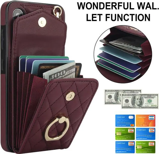 Wallet Ring Holder: 6 cash bags securely hold your cards and some cash without taking wallet outside. It will be your perfect partner when go shopping go for a walk business trip short journey or go to work. 360 degree rotatable Built-in flexible kickstand Provides your Phone with multiple-viewing angles for watching video and movie as a kickstand.