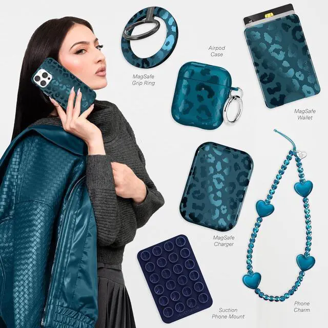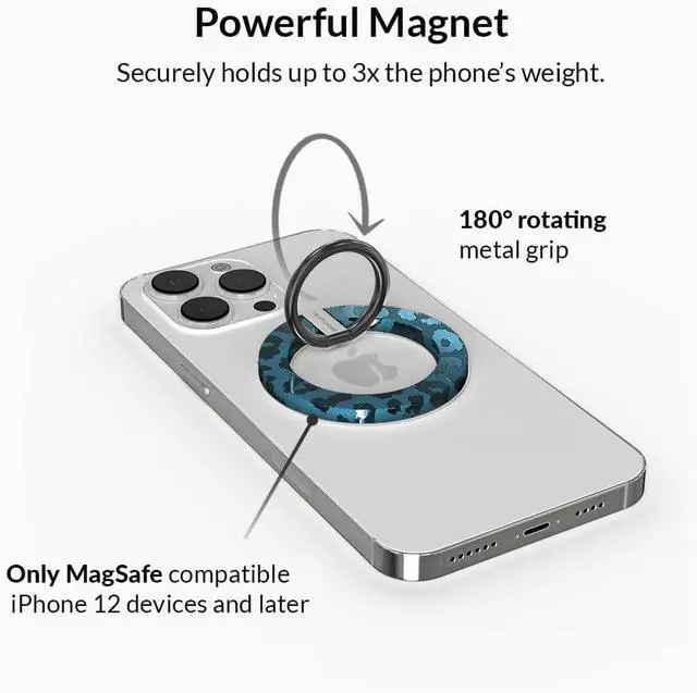 WHAT'S INCLUDED: MagSafe grip + iPhone 14 Case in our Metallic Navy Leopard design.