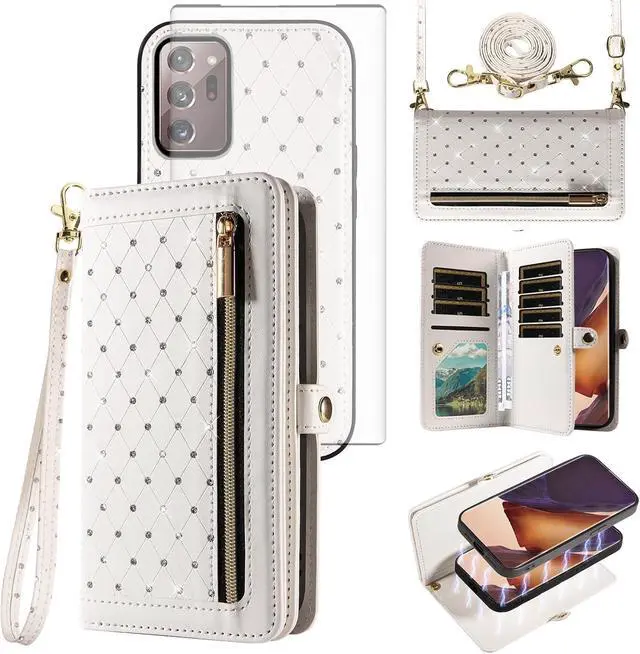 Package includes: We will send the phone case 1 piece tempered glass screen protector + 1 detachable wrist strap + 1 detachable crossbody strap. Adjustable straps can help you find a comfortable length. It would be a nice gift for your lover your family and your friends.