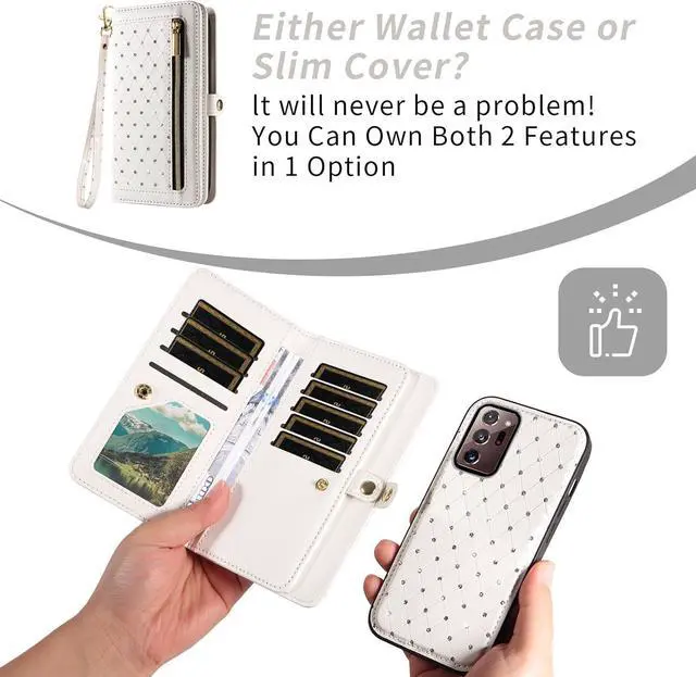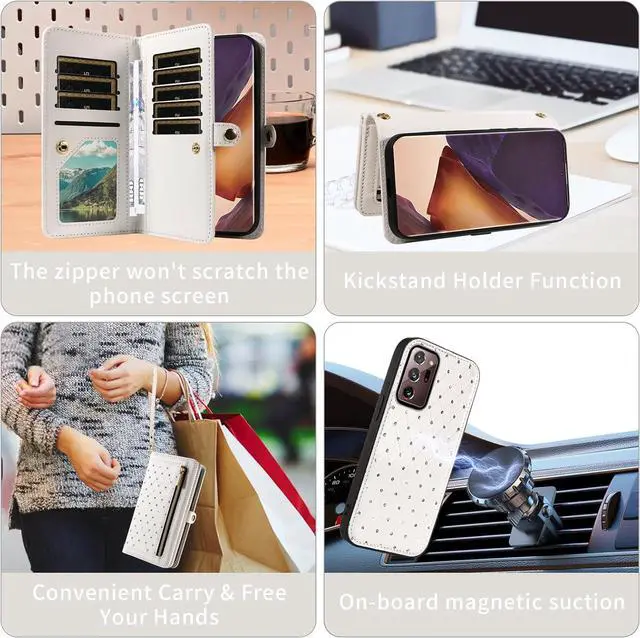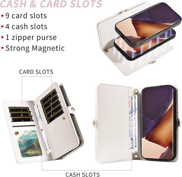 Card Slots & Zipper: This case includes 9 card slots + 4 cash slots + 1 zipper bag hold your ID credit cards driver license bills coins key and a little bit cash without problems. Whether you're heading to the store or walking the dog this wallet phone case is perfect for when you don't want to carry a purse outdoors. Support Detachable &