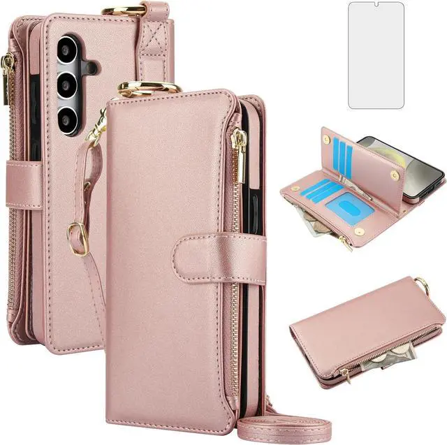 Package includes: We will send the phone case with 1 piece tempered glass screen protector + 1 detachable crossbody lanyard.
