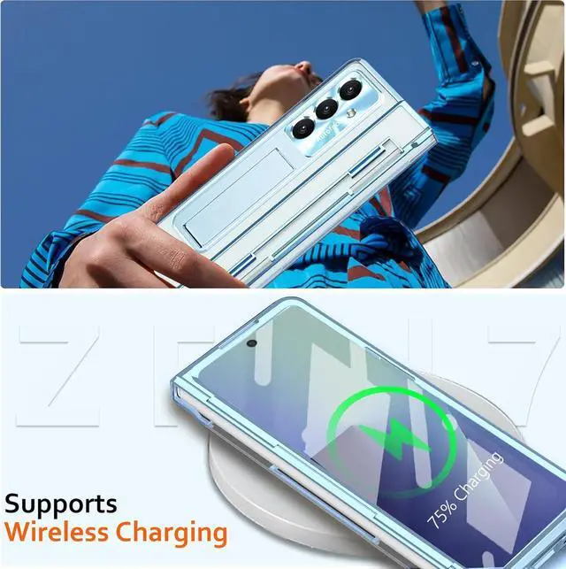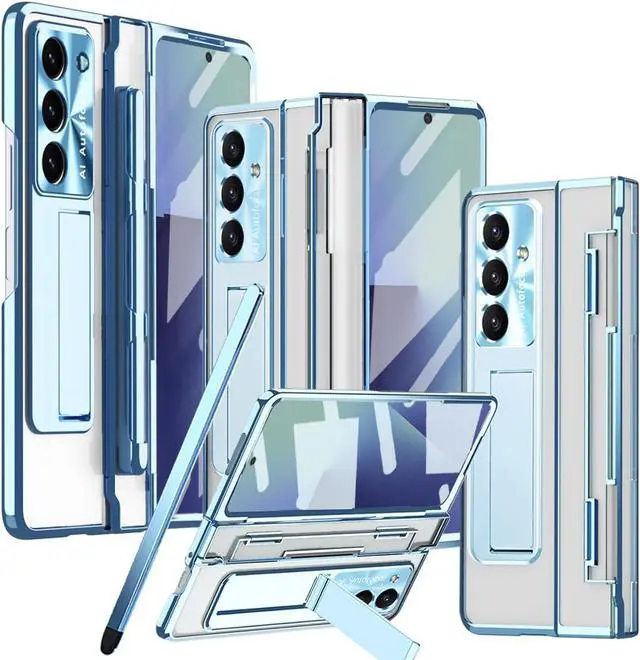 One-Piece Design Case The Z Fold 7 Clear Case is built in the back cover + front screen protector + hinge protector which is a whole one-step installation more convenient. Don't worry that the hinge protector cover will not fall off; With ingenious folding design the hinge will fold freely with the use of the z fold 7 phone. S Pen Holder + Slim Stylus This Z Fold 7 clear case comes with S Pen Holder which fits for Z Fold 5/6 S Pen Edition ONLY you can carrying it everywhere convenient to use; Includes a extra Slim Stylus made of soft silicone and PC material which can write smoothly and will not scratch the screenBuilt in Kickstand Built in the Fold-able Kickstand allows the z fold 7 case has horizontal and adjustable viewing angles helps hands-free for watching meeting learning etc.