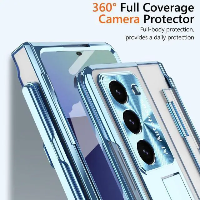 Durable and stable it is support the unfold phone use your phone as you like. One Z Fold 7 case with s pen holder meets your all need of daily protectionAll-round Protection 1. The z fold 7 full coverage case is built in front screen protection is made of 9H tempered glass with 99.99 % clarity and high sensitivity maintaining the original touch experience and visual experience. 2. The aluminum alloy metal camera protector effectively protects your camera lens from scratches or other damages. 3. The raised lips around the camera and lens and screen protector provides a extra protectionCrystal Clear PC Material The z fold 7 s pen holder case is made of high quality PC material high transparent and anti-yellow shows your z fold 6 original beauty it will not become yellow in a long time; Advanced electroplating technology make the color more vivid and durable not easy to fade off