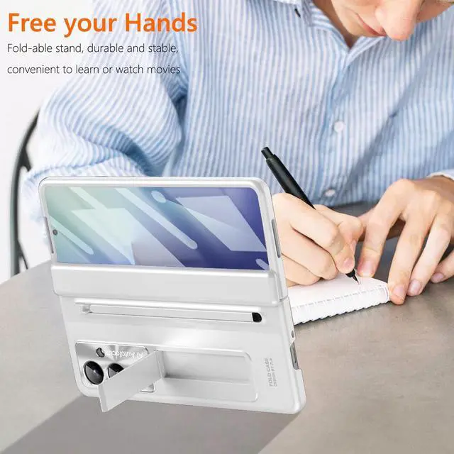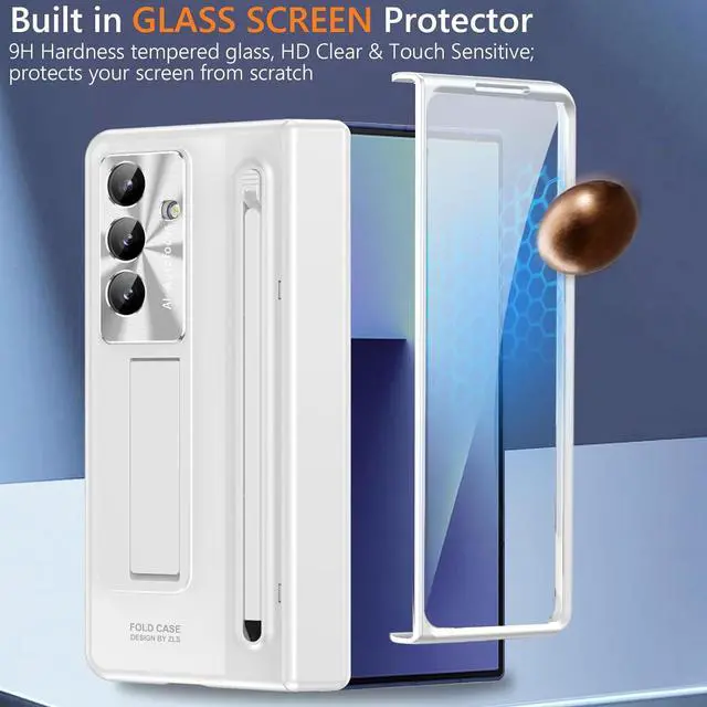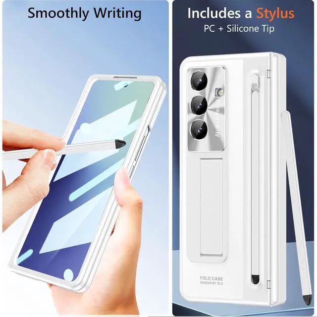 You will get: 1x Galaxy Z Fold 7 slim case + 1 x slim stylusSlim S Pen Holder & Stylus Pen 1. Our Z Fold 7 phone case built in the slim S Pen Holder on the back cover (Only fits for Z Fold 6/5 S Pen Edition) easy to carry your s pen everywhere and convenient to use; Push down the button to pop up the pen; 2. Includes a extra New Slim Stylus made of flexible silicone tip will not scratches your screen smoothly writingIntegrated Hinge Cover & kickstand 1. The z fold 7 s pen holder case with s pen holder comes with integrated Hinge Cover connects with the back cover it can't be remove; Full covers the hinge excellent scratch-resistant and shockproof; Spring design automatic rebound no need for manual switch you will not worry the hinge cover fall off. 2. Built in a kickstand on back cover free your hand convenient for reading watching movies and face-to-face chatting with friendsBuilt in Screen Protector & Camera Protector 1. Our Z Fold 7 kickstand case built in Screen Protector prevents your z fold7 screen from scratches and damage by the key or other things.