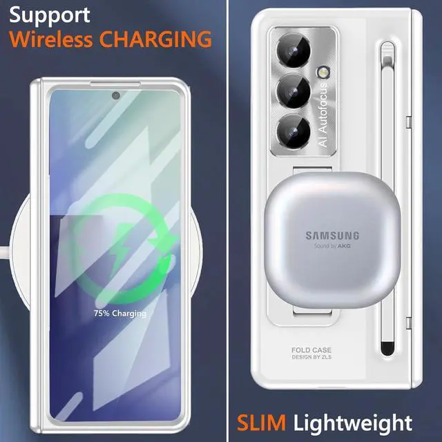 Ultra-thin and high transparency keeping original visual and touch experience for you; 2. Includes the integrated camera protector cover aluminum alloy material protects the camera part from scratches; 3. The raised lips around screen & camera offers extra protectionElectroplating PC Material The Z Fold 7 s pen holder case with kickstand is made of high quality PC materials adopts special electroplating color technology make the color more vivid and durable make your z fold 7 more fashion and elegant the color is not easy to fade off. Matte surface smooth and anti-fingerprint comfortable to touch; Slim lightweight supports wireless charging easy to store in pockets or backpacks without taking up space