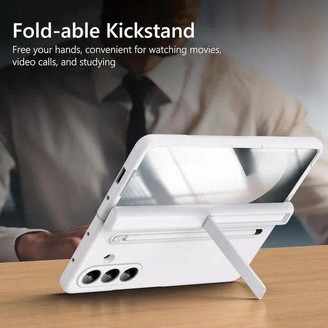 Ultra-thin and 99.8 % high transparency bring bright and colorful image quality keeping original visual and touch experience for you. The raised lips around camera offers extra protection on your camera lens with accurate cutoutsMatte PC Material The z fold 7 s pen holder case with kickstand is made of High quality PC material adopted skin-friendly paint for a delicate touch comfortable touch feeling. Matte surface anti-fingerprint and anti-oil easy to clean; Slim lightweight design easy to grip your fold7 supports wireless charging dont need to take off the z fold7 s pen holder case before charging.