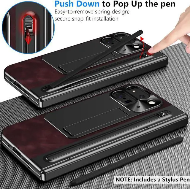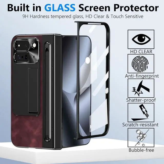 You will get: 1x Google Pixel 10 Pro Fold case with hinge protection + 1 x slim stylusIncludes a Slim Stylus & Pen Holder Our Google Pixel 10 Pro Fold phone case includes a Slim Stylus which is made of flexible silicone tip will not scratches your screen smoothly writing and high touch sensitive. Built in the pen holder on the back cover you can easy to carry the stylus everywhere and convenient to useIntegrated Hinge Cover & kickstand 1. The Google Pixel 10 Pro Fold case with s pen holder is comes with integrated Hinge Cover connects with the back cover it can't be remove more durable and stable excellent scratch-resistant and shockproof; Spring design ensures freely folding. you will not worry the hinge cover fall off. 2. Built in a kickstand on back cover free your hand convenient for reading watching movies and face-to-face chatting with friendsBuilt in Screen Protector & Camera Protector 1. Our Google Pixel 10 Pro Fold kickstand Case with hinge protection built in front Screen Protector prevents your Google Pixel 10 Pro Fold screen from scratches and damage by the key or other things. Ultra-thin and high transparency keeping original visual and touch experience for you.