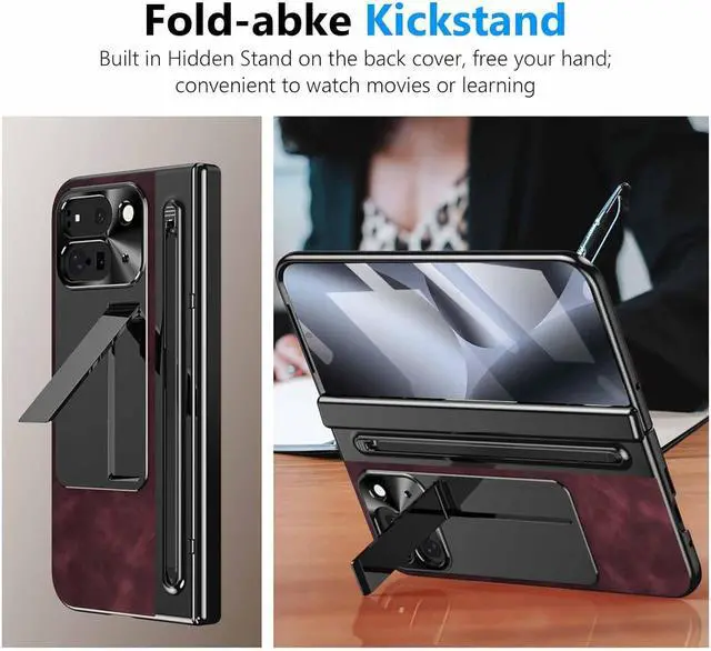 2. Includes the integrated camera cover protects your phone from scratches or bumps. 3. The raised lips around screen & camera offers extra protectionRetro Leather Material The Google Pixel 10 Pro Fold Case with kickstand is made of premium PU Leather + electroplating PC material make the color more vivid and durable make your Google Pixel 10 Pro Fold more fashion and elegant the color is not easy to fade off
