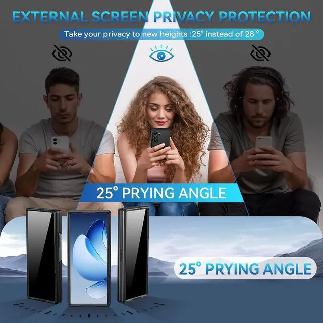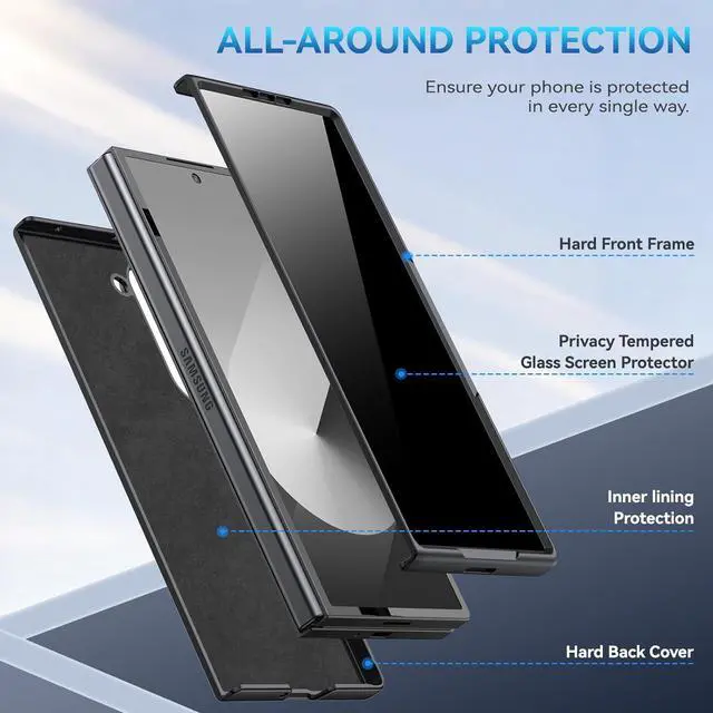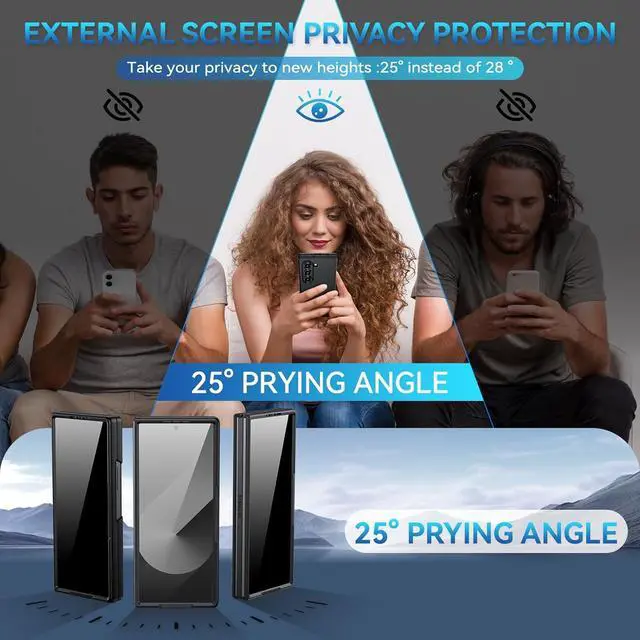 MUST READ: Please remove any other third-party screen protectors and the product's own overlay film before use.?? Protecting Your Privacy In PublicZ Fold 6 case has a built-in privacy protector (front screen only). The upgraded glass utilizes advanced plasma exchange technology which is stronger and more wear-resistant than traditional glass easily accessing every corner of the screen. In addition the privacy film supports front visibility only so when you pass the reading information on the external screen in the subway/bus or shopping mall no one next to you can see it.